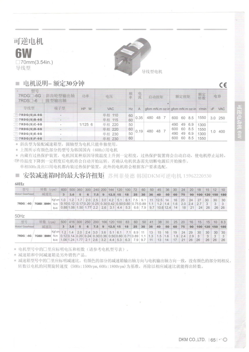 7RDGC-6G韩国DKM可逆电机 正反转